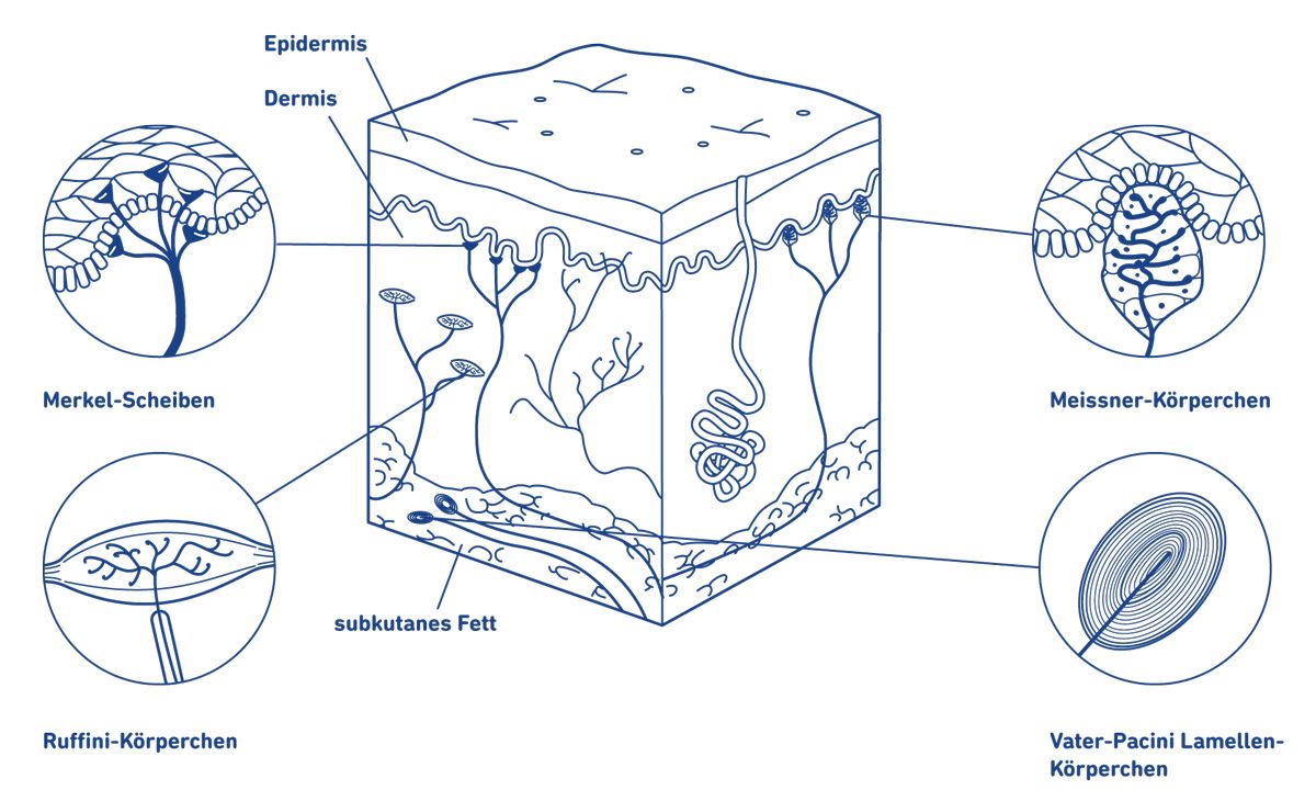 RA-Rezeptoren oder Meissner-Körperchen reagieren vor allem auf Bewegungsreize.