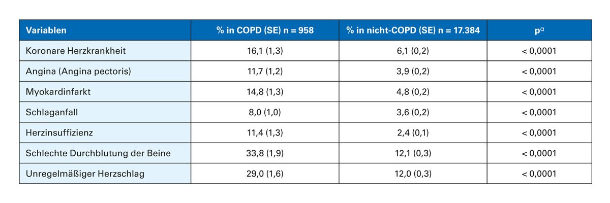 Tab. 1: Kardiovaskuläre Komorbiditäten bei Menschen mit und ohne COPD (mod. nach Finkelstein et al. [12])