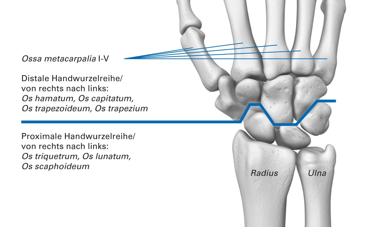 Das Handgelenk ist ein multiartikuläres System. Dessen Funktion ist abhängig von intakten Gelenkflächen, einem stabilen Bandapparat sowie den extrinsischen Handgelenk-, Fingerbeuge- und Strecksehnen.