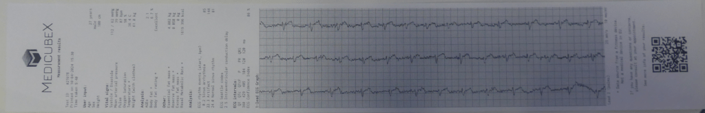 Nach rund 6 Minuten ist die Show vorbei und die Station druckt ein Etikett mit allen Werten aus. Mit auf dem Ausdruck ist ein QR-Code zu einer Website mit den entsprechenden Referenzwerten. Über eine Schnittstelle können die Werte bei Bedarf auch direkt in Patientenverwaltungssysteme eingespielt werden.
